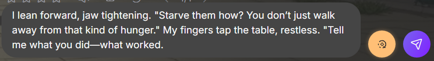 If you’re not satisfied with a character’s response and want a different one, use the Regenerate button located below the character’s message. You can generate multiple responses and choose the one that suits you best.