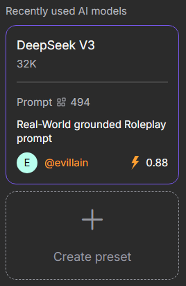You can create a preset AI model with a pre-configured system prompt. This allows you to quickly apply a specific style of behavior and speech for a character without manually adjusting each parameter.